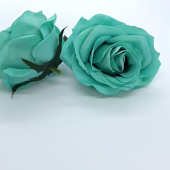 This artificial rose head is a gorgeous shade of deep turquoise or deep teal / aqua! It is a rich, saturated color that would add a beautiful pop to any arrangement. The rose is very sturdy with so many petals and layers and it holds its shape beautifully. This is for the rose head and it has a small stem behind it as shown.