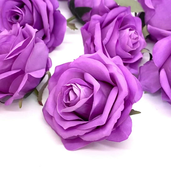 This artificial rose head is a gorgeous shade of rich medium purple! Some might consider it very dark/deep lavender shade. It is a rich, warm shade of medium purple that pairs beautifully with both light and dark floral arrangements. The rose is very sturdy with many petals and layers and it holds its shape beautifully. This is for the rose head and it has a small stem behind it as shown.