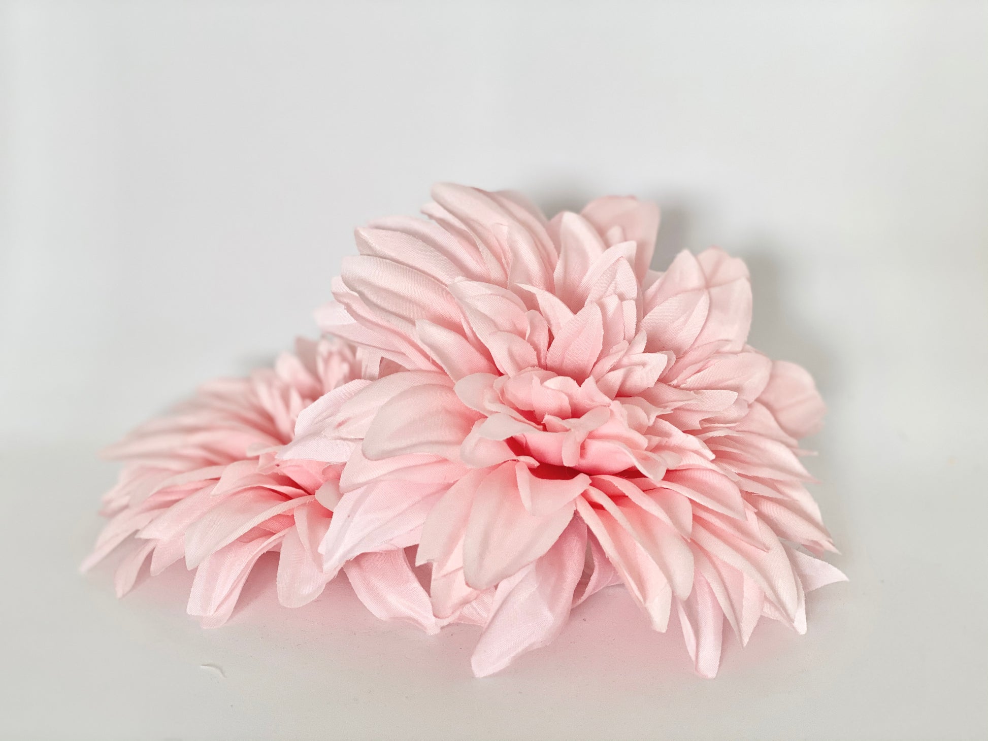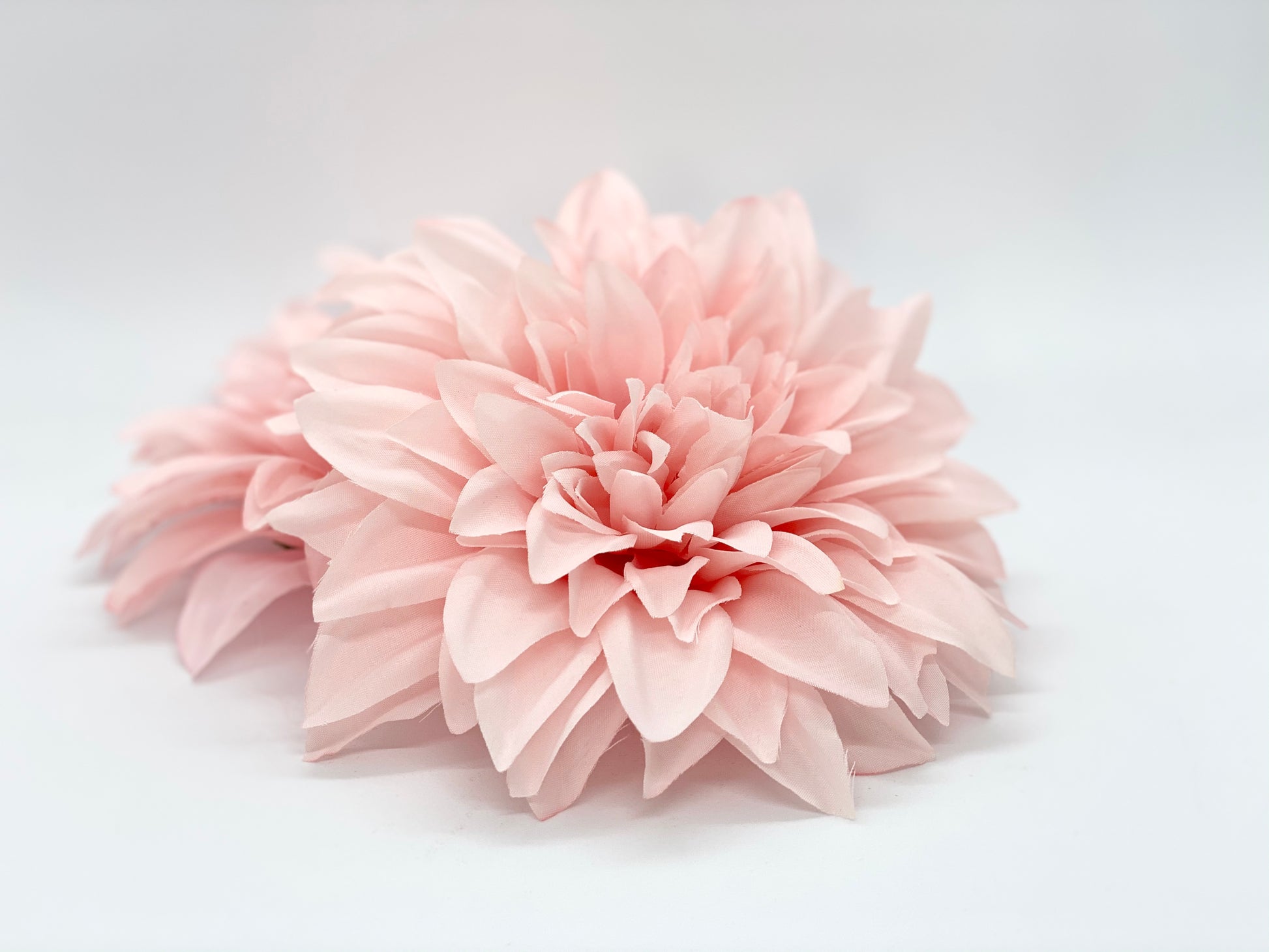 This beautiful large baby pink dahlia is medium baby pink color with with so many petals for a full, boho feel. Its texture would add so much dimension to a design or arrangement.